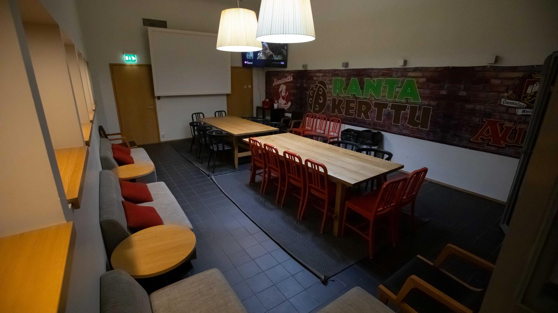 Kuumien ja kosteiden hetkien lisäksi saunatiloistamme löytyy yllin kyllin pinta-alaa myös illanviettoon. Pitkissä pöydissämme onkin käyty monia kiinnostavia keskusteluja ja osoitettu juhlamieltä parhaassa mahdollisessa seurassa. Myös viihdevarustelu on kohdallaan – tiloista löytyy esimerkiksi televisio ja valkokangas asiakkaan videotykille.